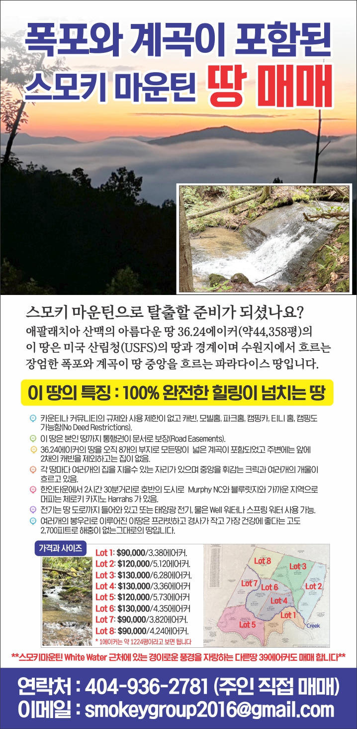 스모키 마운틴 계곡의 중앙에 흐르는 37에어커 파라다이스 땅을 매매합니다.