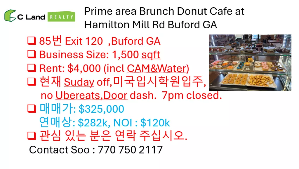 브런치 도넛 카페 매매 - 헤밀턴 밀 로드 GA