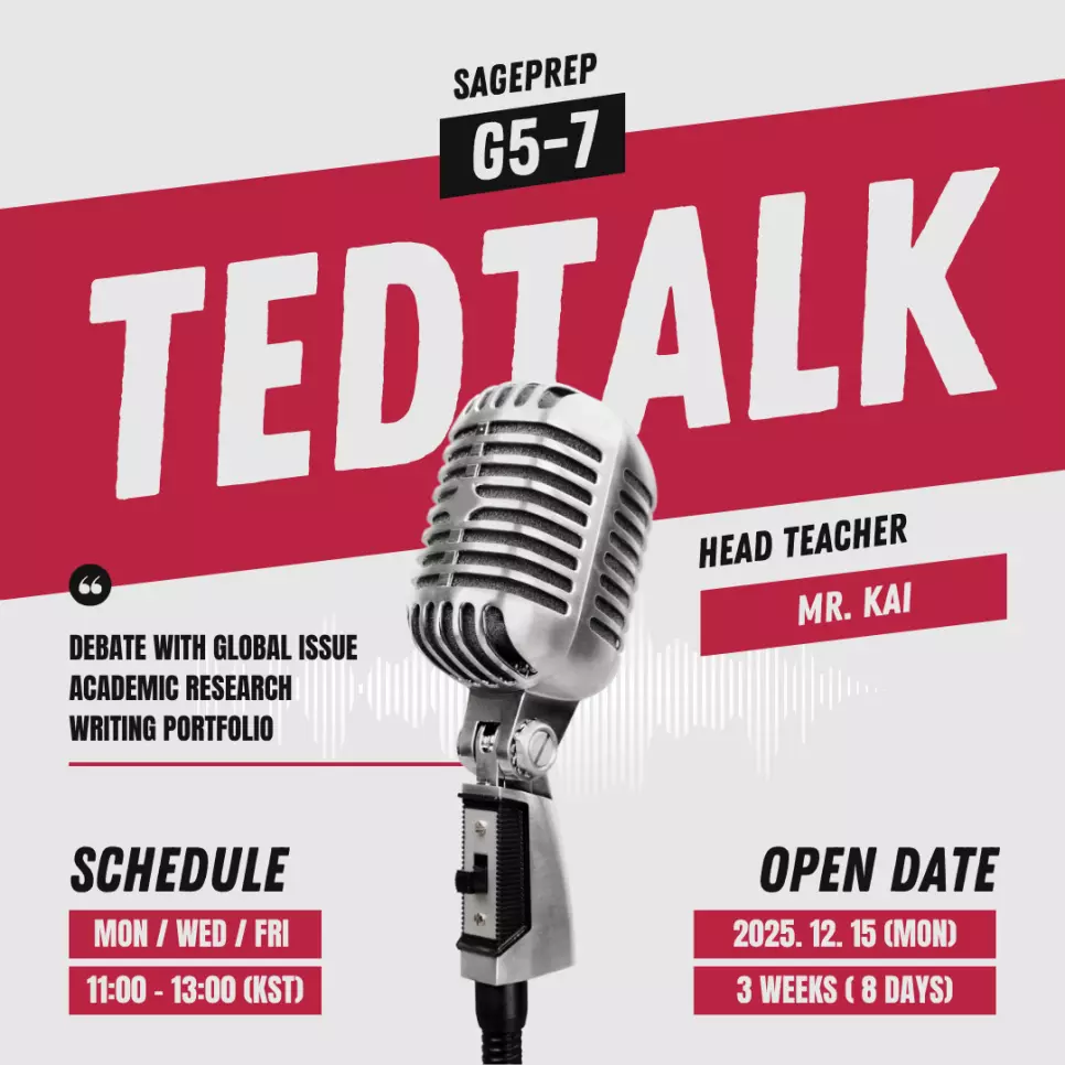 세이지프렙의 시그니처 프로그램 Junior TED TALK - Social Issue 특강 12월 개강