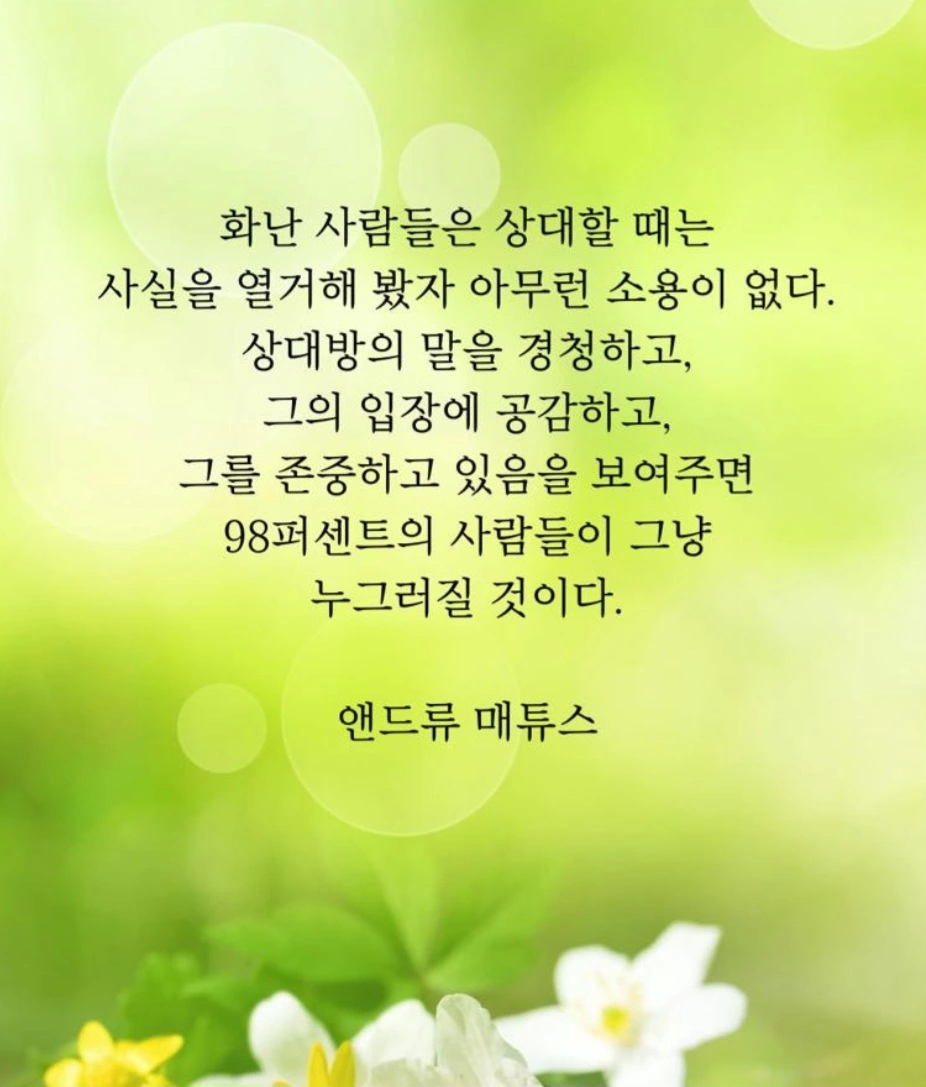 | 18932 | 화난 사람 상대할 때는 | 6 | 생각생각 | 12/12/2025 |