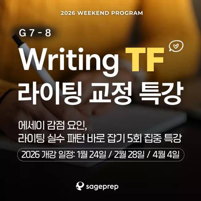 | 20016 | ⚡G4-6 주니어 영어 '전환기'를 놓치면 생기는 결정적 차이 | 41 | 세이지프렙 | 01/16/2026 |