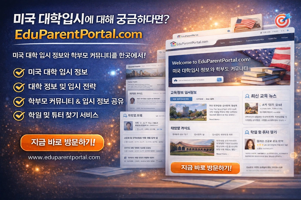 https://eduparentportal.com 에 들어가 보시면 대학진학 관련 내용이 꽤 있으니 참고하세요.