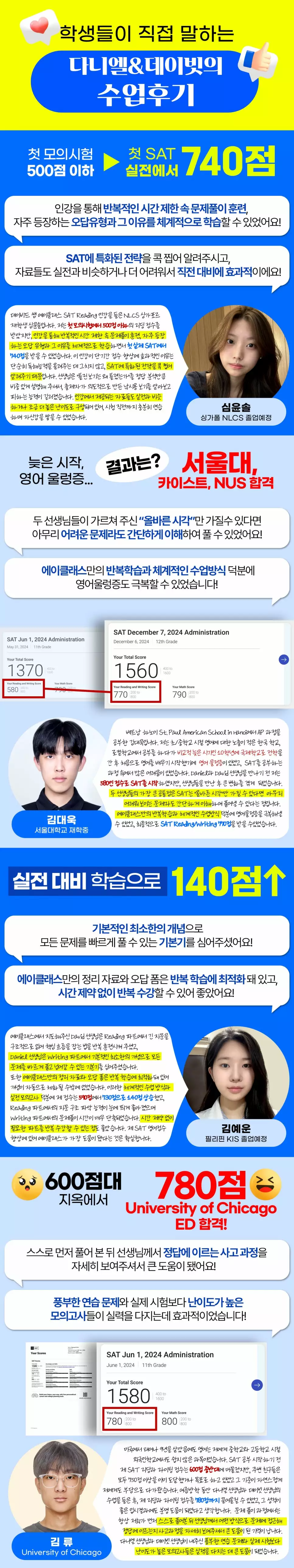 국내 최다 SAT 1500+점 1,510명의 성적표가 말해줍니다.