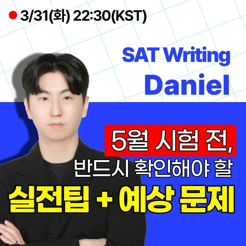 SAT WRITING : 3월 31일 (화) 22:30(KST) – 신청 메시지 : 오픈 SAT W