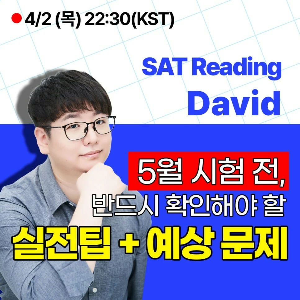 SAT READING : 4월 2일 (목) 22:30(KST) – 신청 메시지 : 오픈 SAT R