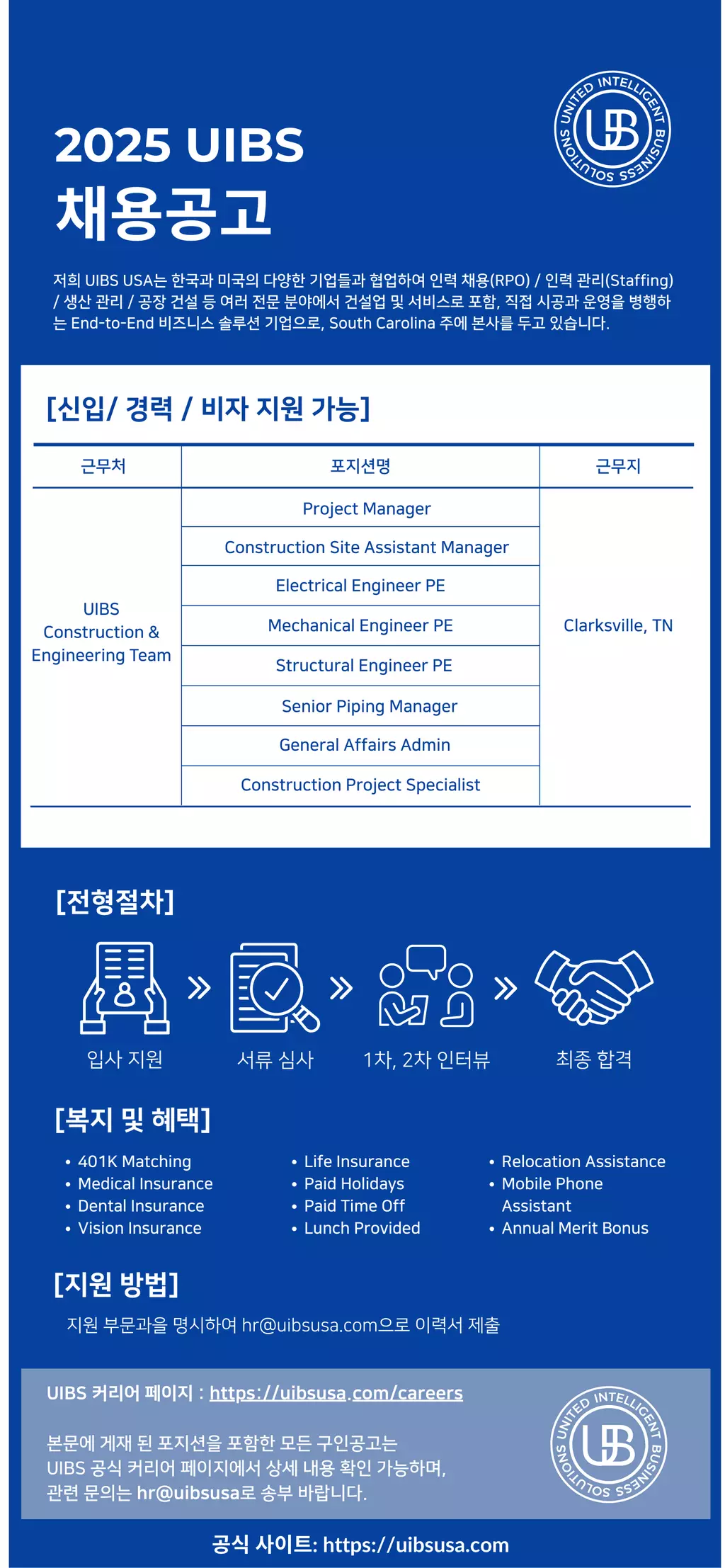 (UIBS) LG Chem 프로젝트 - UIBS 소속 Construction & Engineering Team 대규모 채용