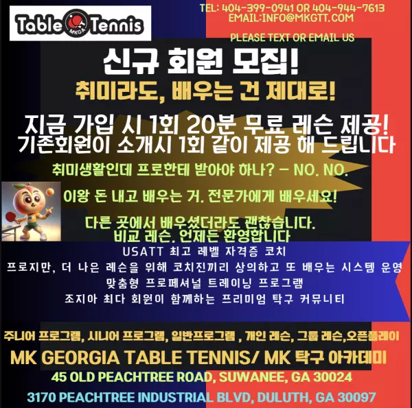 조지아 최다 회원이 함께하는 프리미엄 탁구 커뮤니티