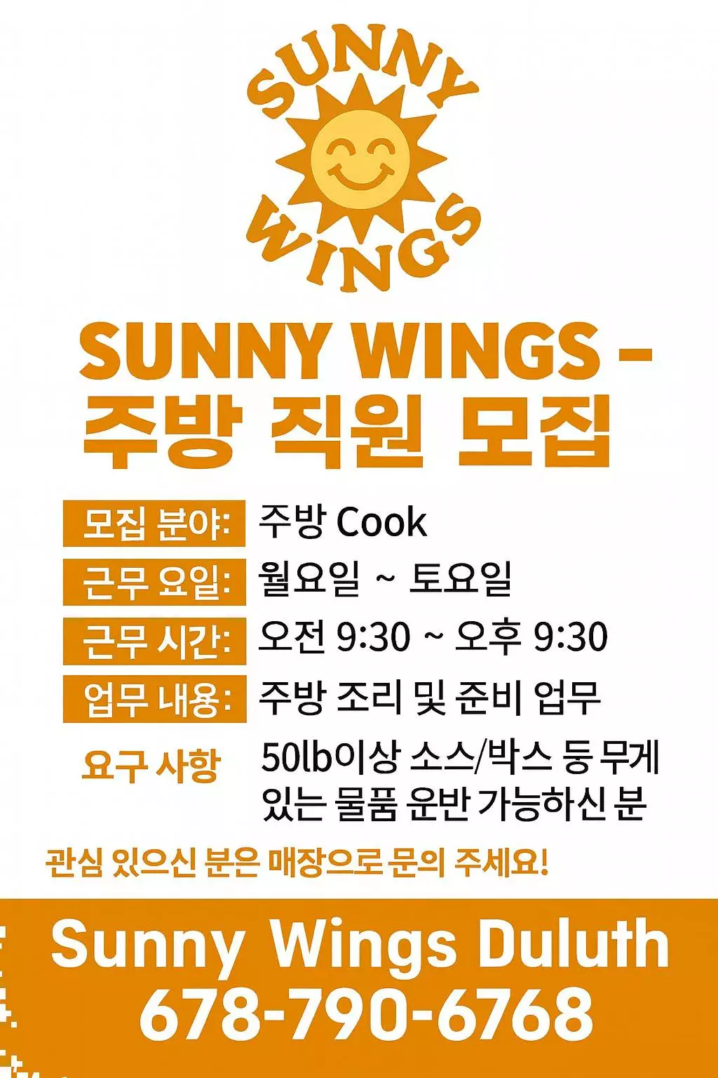 SUNNY WINGS DULUTH – 주방 직원 모집