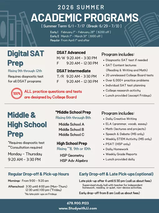 2026 JJ Summer Camp 에서 여름방학동안 JJ 와 함께 공부할 학생들을 모집합니다!