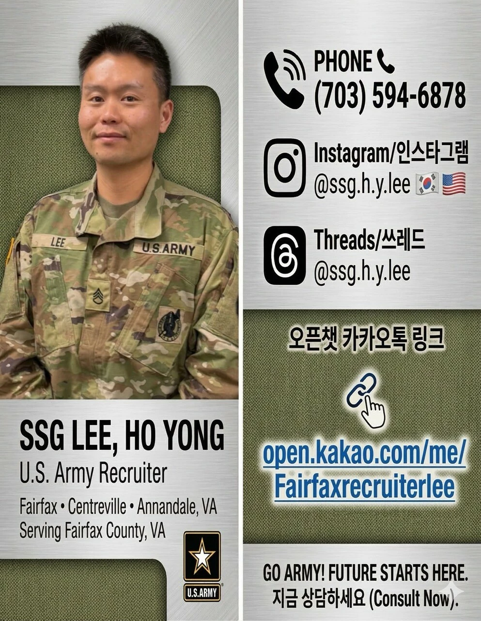 미 육군 모병관 SSG Lee, Ho Yong (이호용 하사) 입니다.