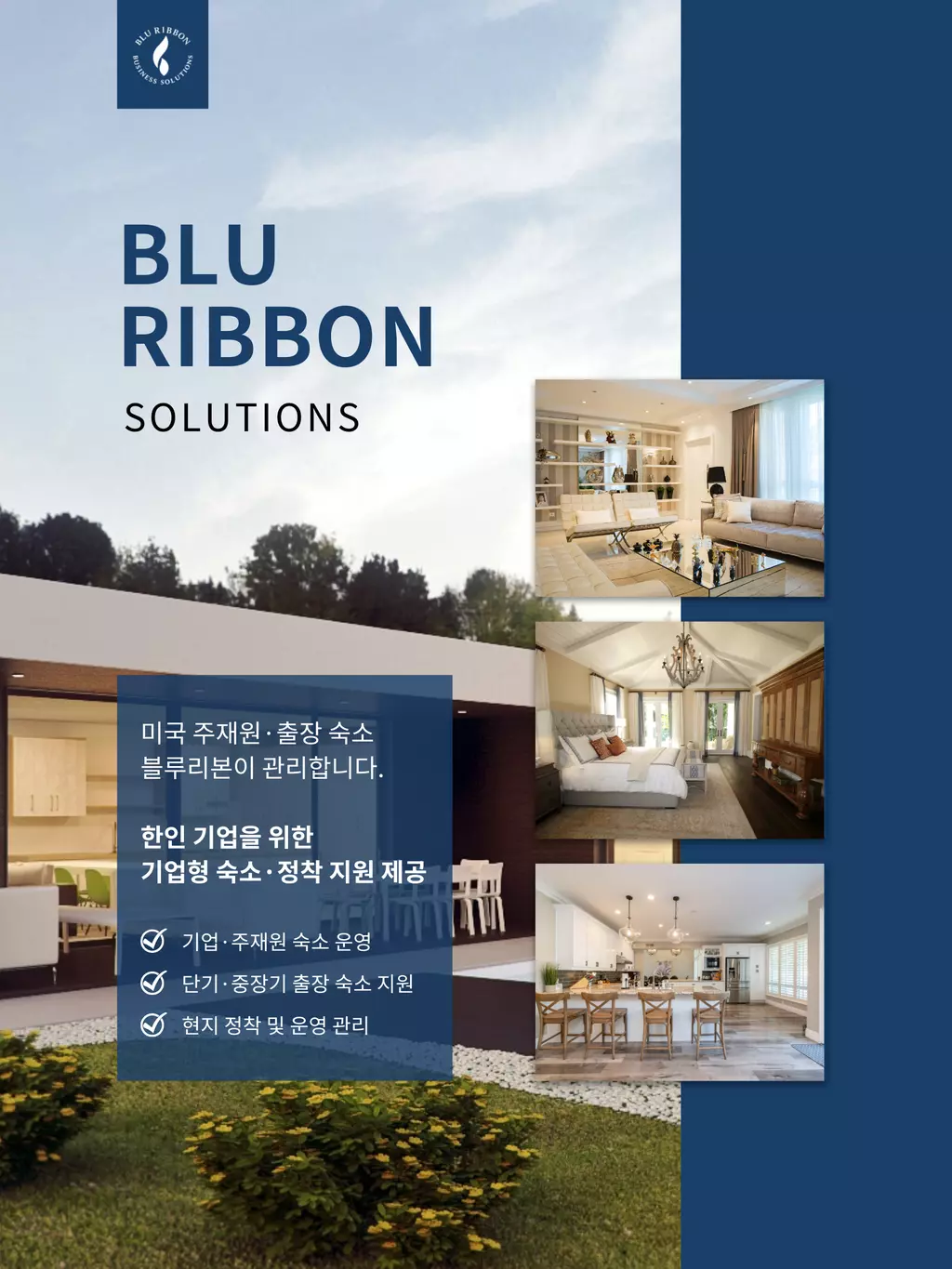 저희 블루리본은 미국에 진출하는 한국 기업들의 안정적인 현지 운영을 지원하는 비즈니스 서비스 기업입니다.