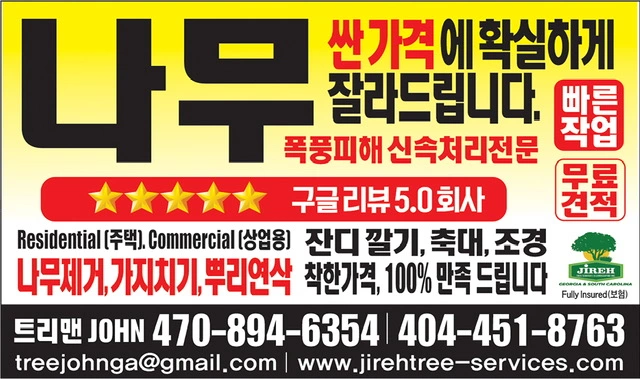 나무 시원하고 싼가격에 잘라 드립니다.(나무제거,가지치기,뿌리연삭,잔디깔기, 축대, 배수로 공사, 조경. 스프링클러,GUTTER CLEANING....)