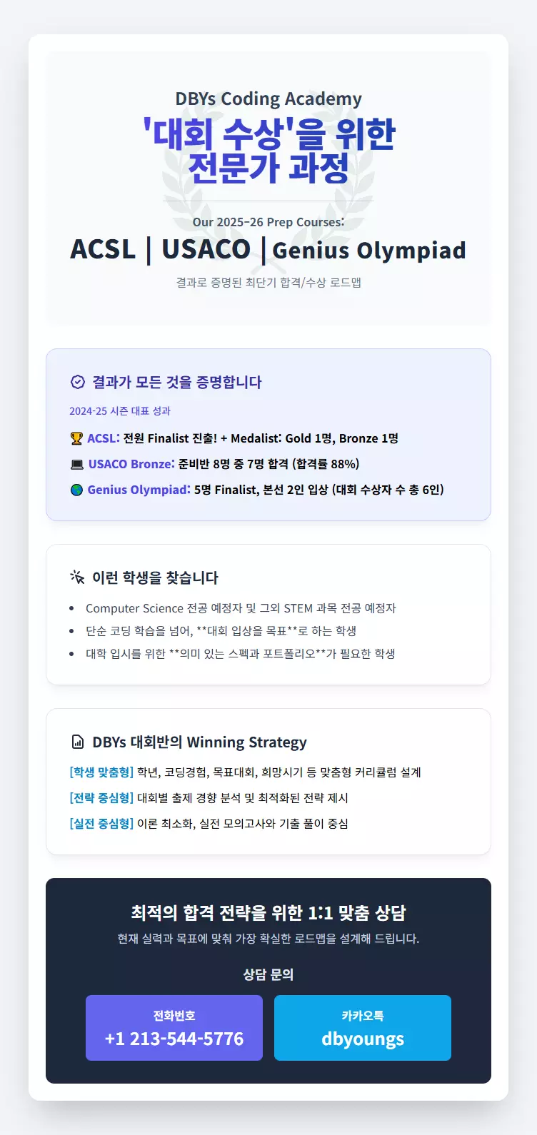 2024-25 성과로 증명된 ACSL, USACO, Genius Olympiad 대회 준비반 수강생 모집