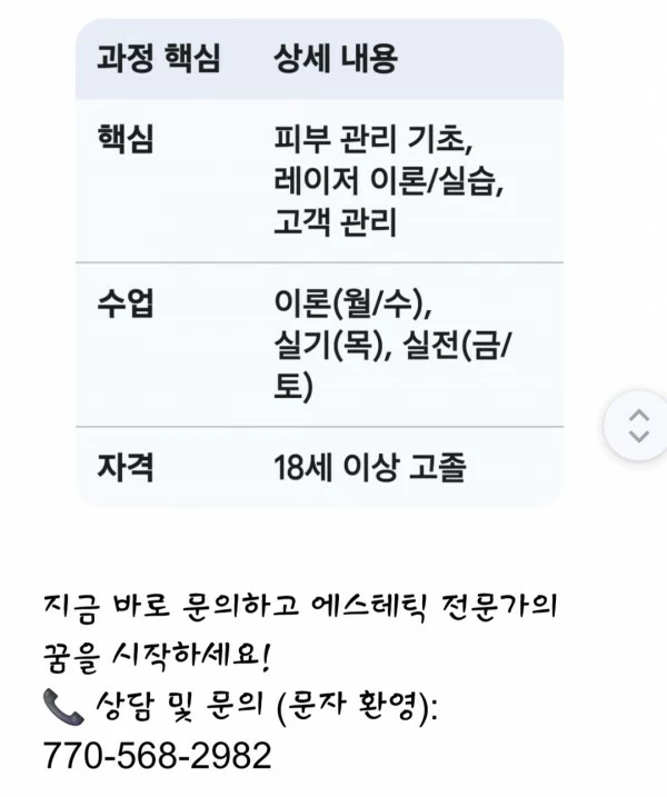 지금 바로 문의하고 에스테틱 전문가의 꿈을 시작하세요!