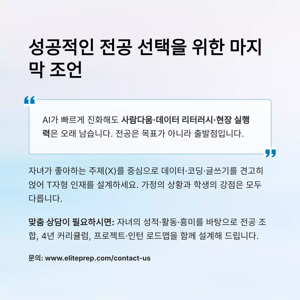 자세한 글: https://eliteprep4koreans.com/what-major-should-my-child-choose-to-succeed-in-the-age-of-ai/