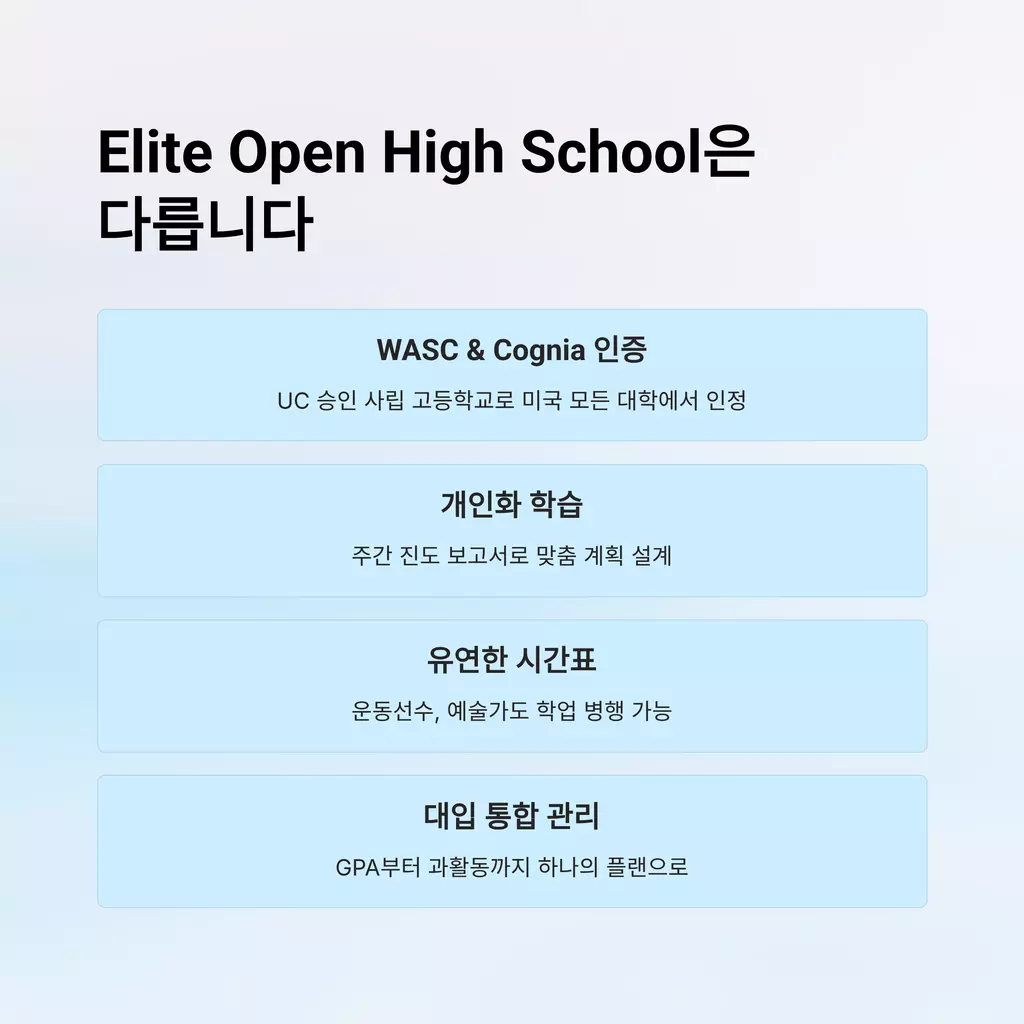 SAT 부터 재정보조, 그리고, Transfer 가 필요없는, AP 와 대학 수업까지 온라인으로 수강할수있는 엘리트 프렙에서 아래와 같이, 학부모님께 유용한 정보를 전해드립니다.