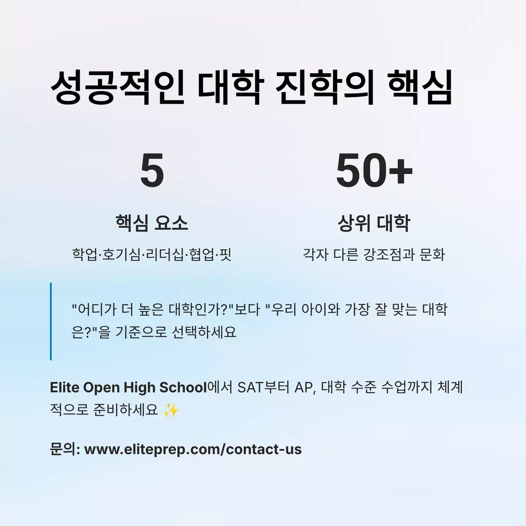 SAT부터 재정보조, 그리고 미국내 모든 대학으로 부터 승인된 AP와 대학 수업까지 수강할 수 있는, Elite Open High School 을 운영중인 엘리트 학원에서 아래와 같이, 학부모님께 유용한 정보를 전해드립니다.