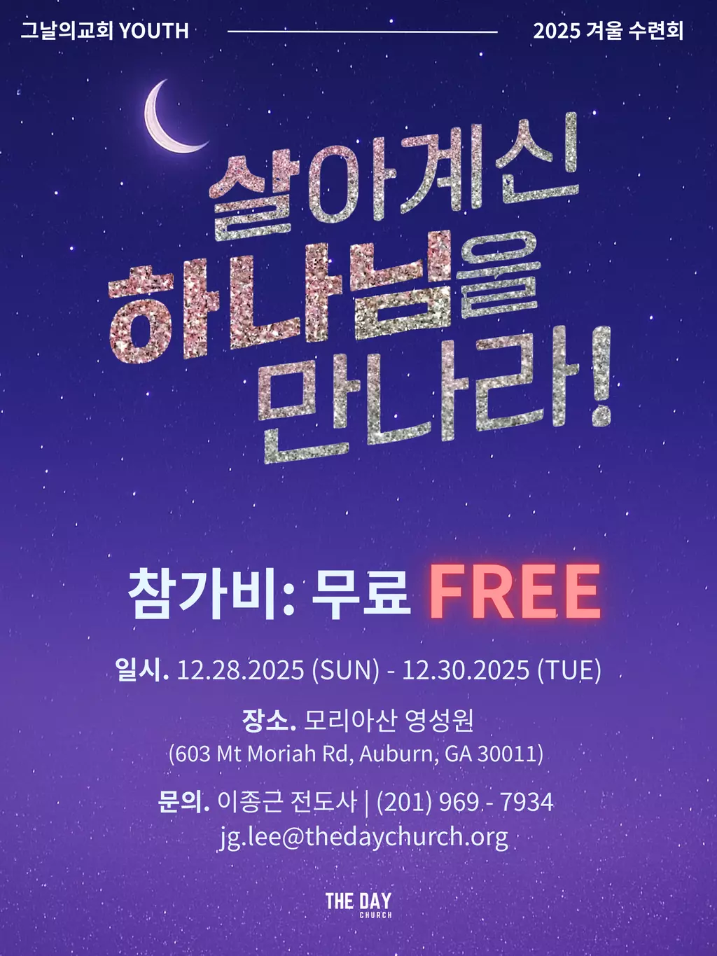 지금도 살아 역사하시는 하나님을 만나는 은혜의 자리에서 여러분을 기다리겠습니다. 감사합니다!