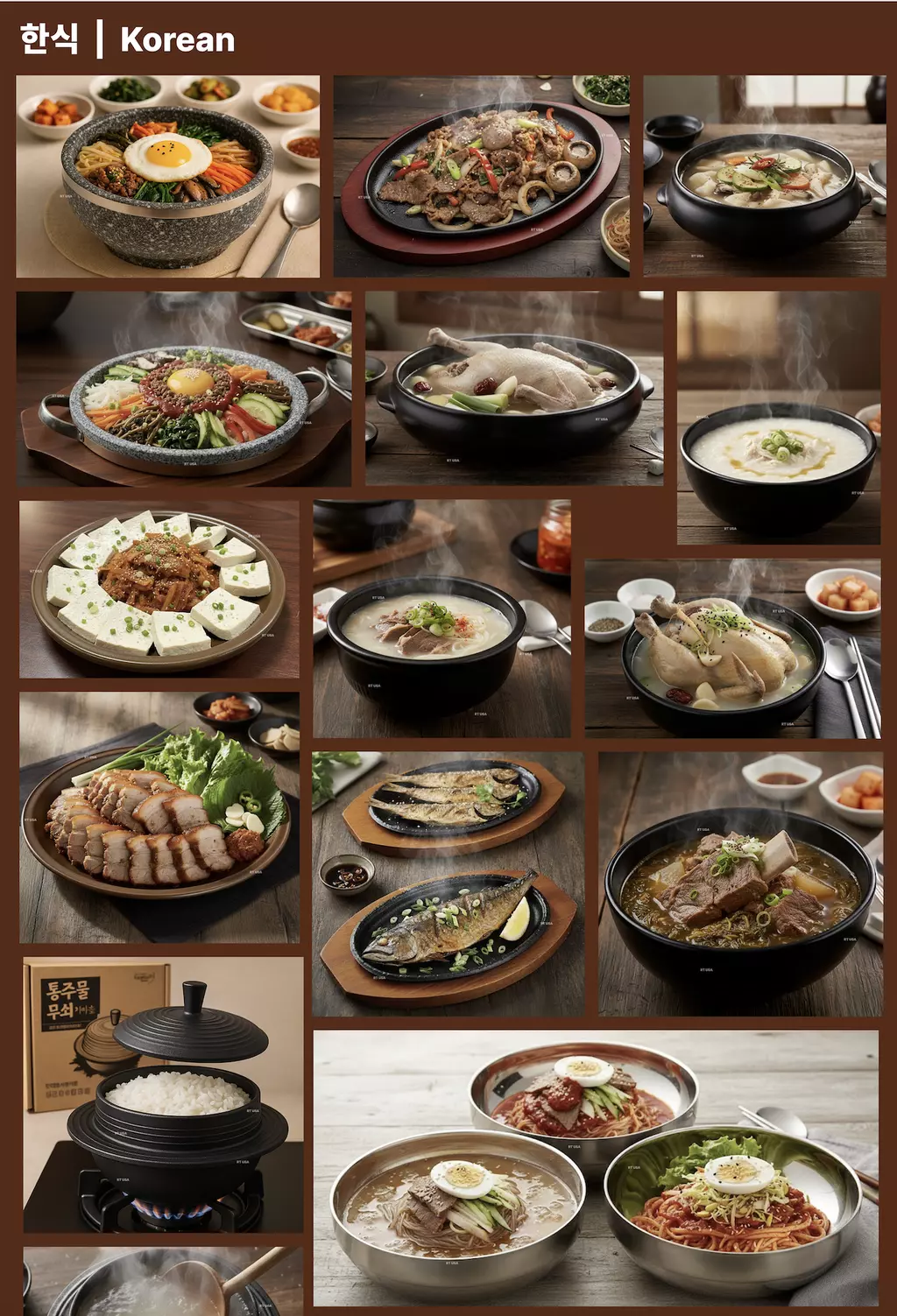 한식: 뚝배기, 돌솥, 밥공기, 전골냄비, 구이팬, 뜨거운 음식 전용 그릇부터 찬기, 국자, 젓가락까지 한식당에 필요한 모든 식기류, 주방용품을 도매가로.