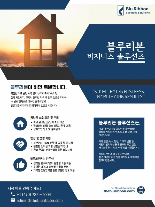 저희 블루리본은 미국 전역에 진출하는 한국 기업들의 성공적인 현지 적응과