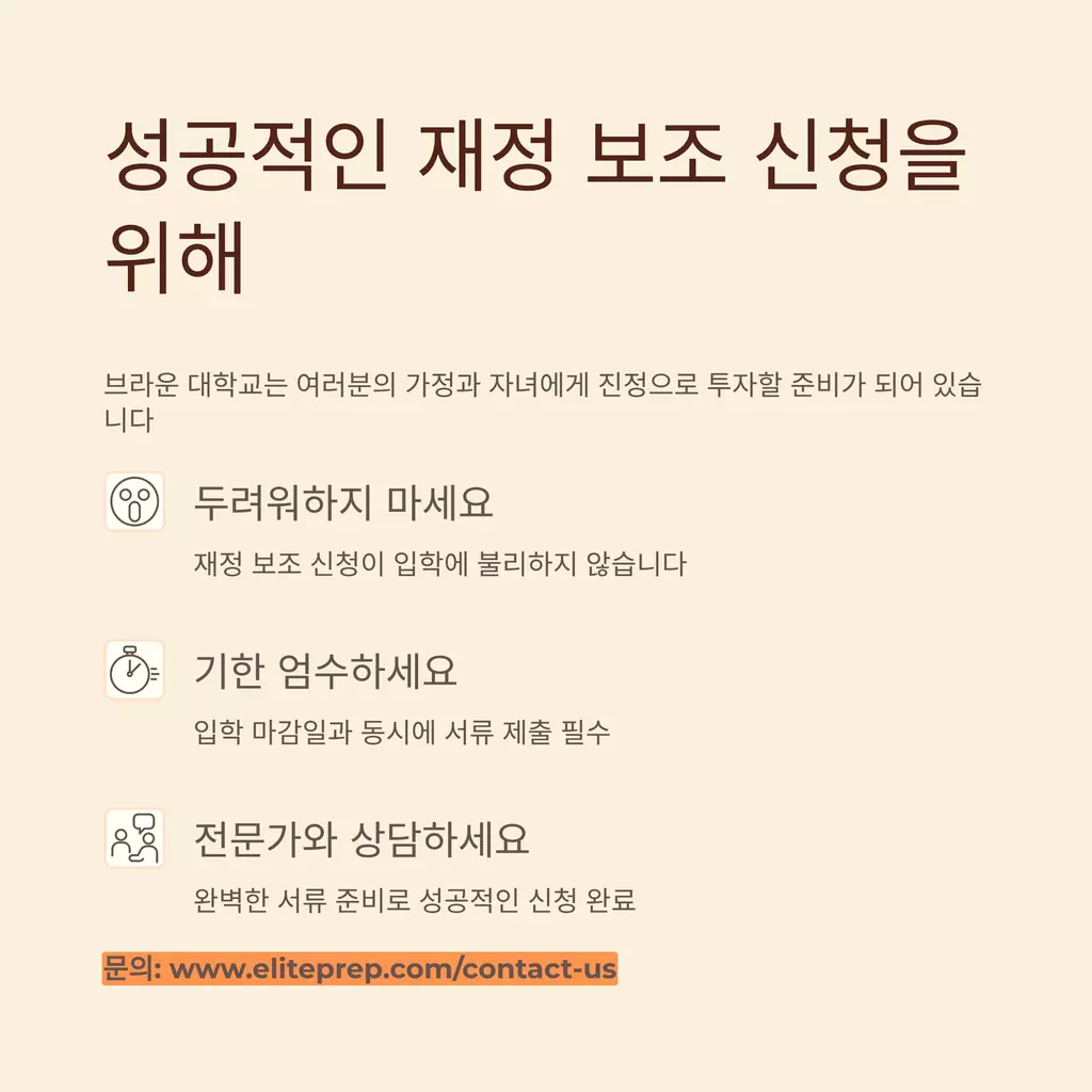 자세한 글: https://eliteprep4koreans.com/brown-university-a-complete-financial-aid-guide-for-parents/