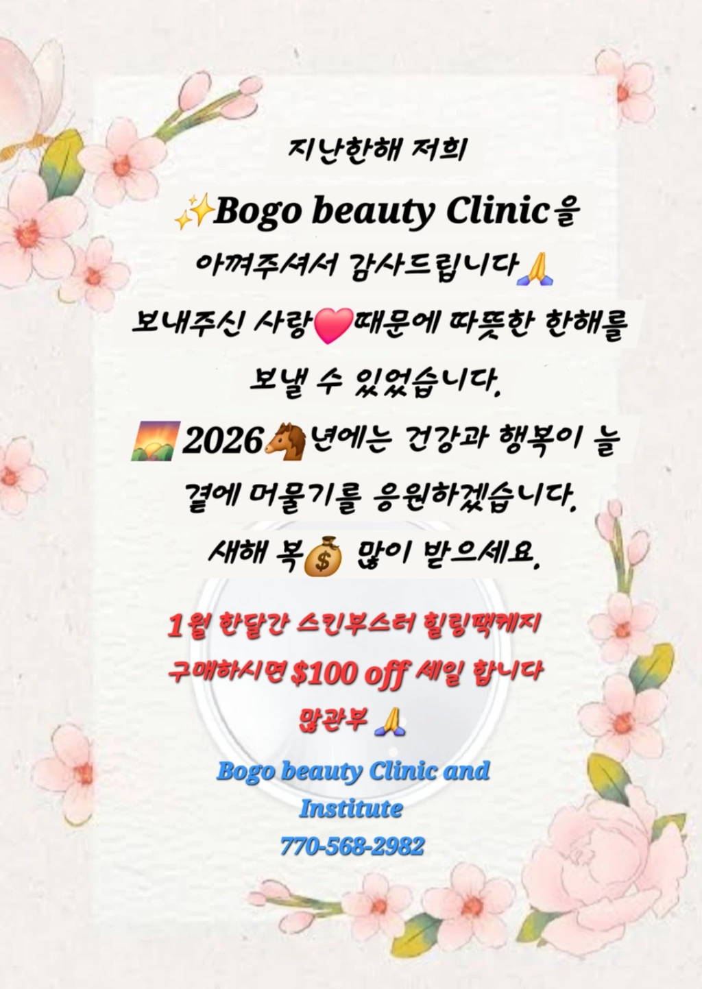 지난한해 저희 ✨️Bogo beauty Clinic을 아껴주셔서 감사드립니다🙏.