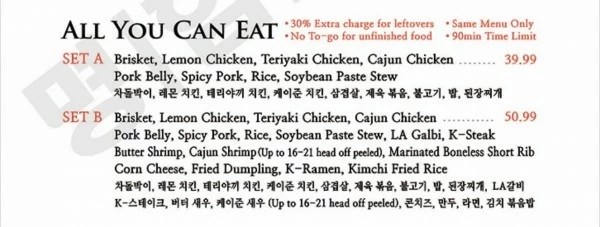 ALL YOU CAN EAT 메뉴 추가 되었습니다