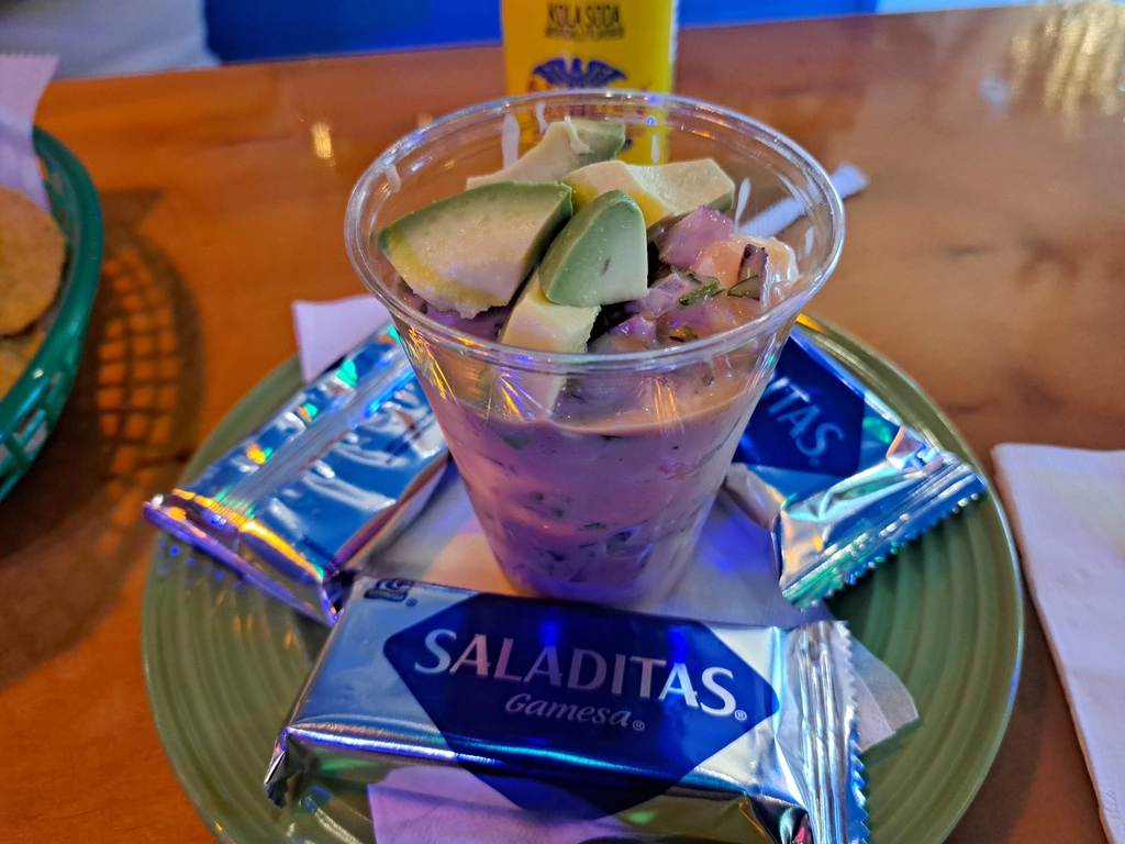 콜롬비아식 해산물 요리의 진수를 보여준 Punta Canoa입니다 (메뉴에서#3) . 역시 새우살, 문어 다리, 토마토, 양파, 하라피뇨, 쎌란트에 레몬의 상큼한맛을 입힌 요리입니다. 가격 $14.95