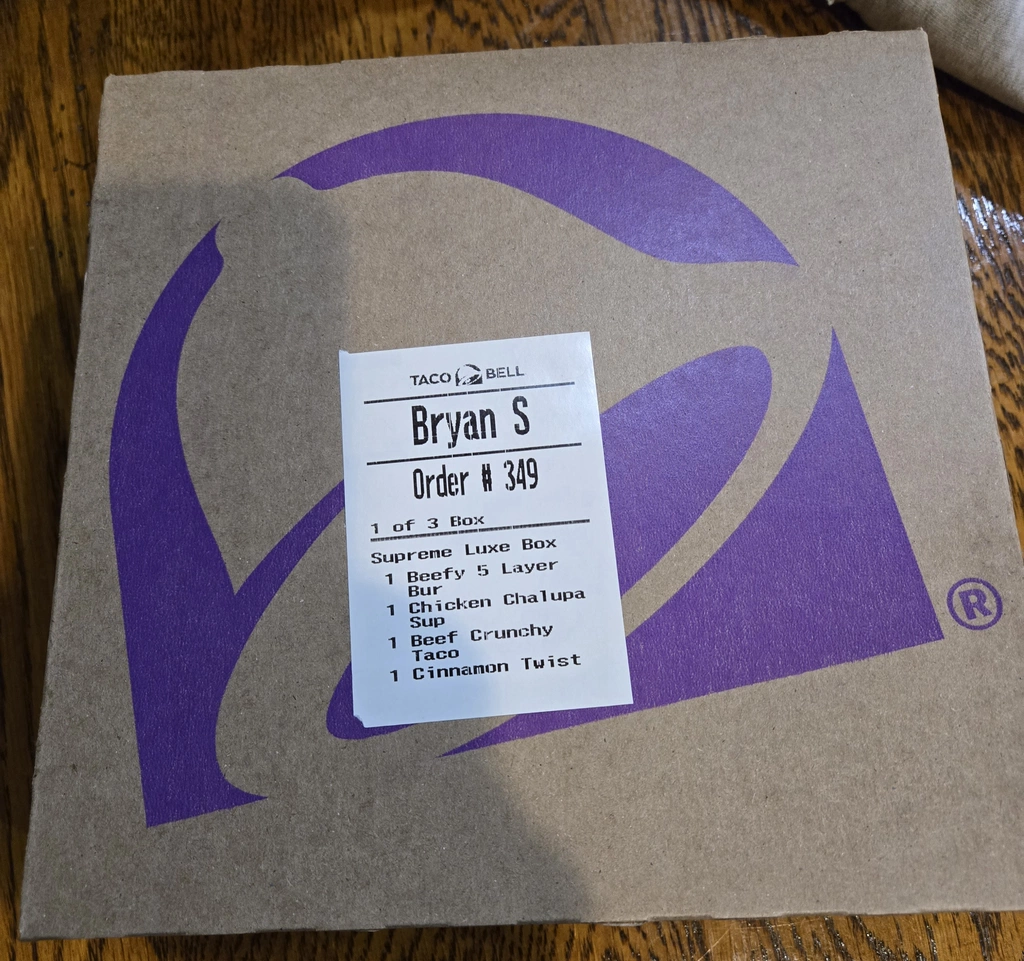 Taco Bell에 Supreme Luxe box라는게 있는데, medium 음료수 포함해서 $7입니다.