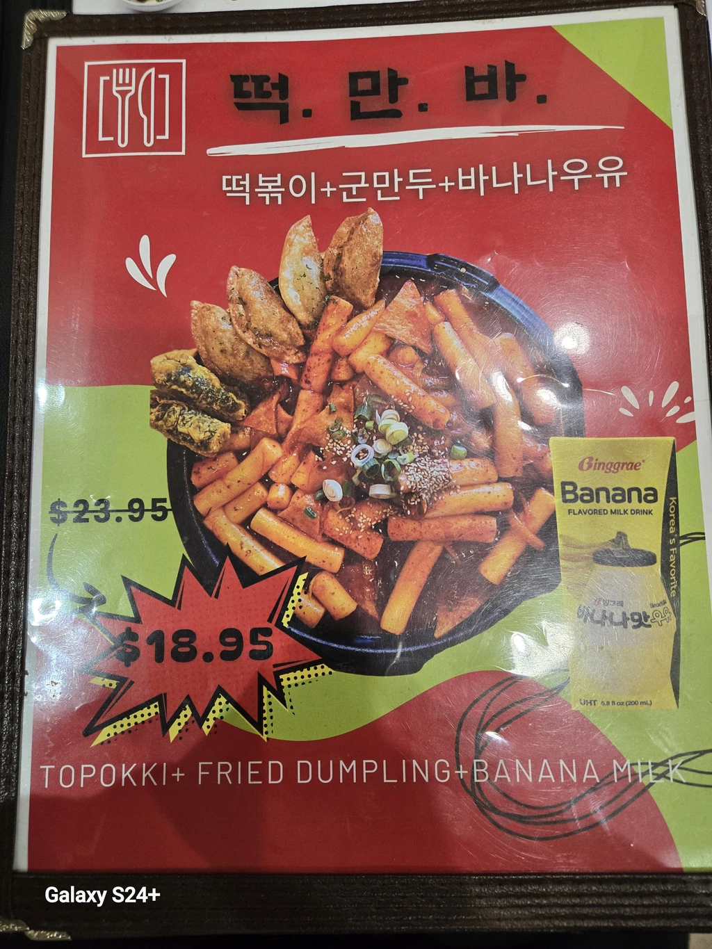 바나나 우유 끼워 넣으신 건 매운맛 중화하라는 이유이기도 한데, 외국사람들이 바나나 우유 맛있어하고, 신기해해서 주는 것 같기도 합니다.