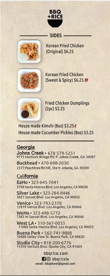 LA의 미슐렝 Chef가 한식의 대중화를 위해 개발한 덮밥 브랜드 BBQ+RICE가 조지아 벅헤드에 이어 드디어 존스크릭에 입점했습니다.