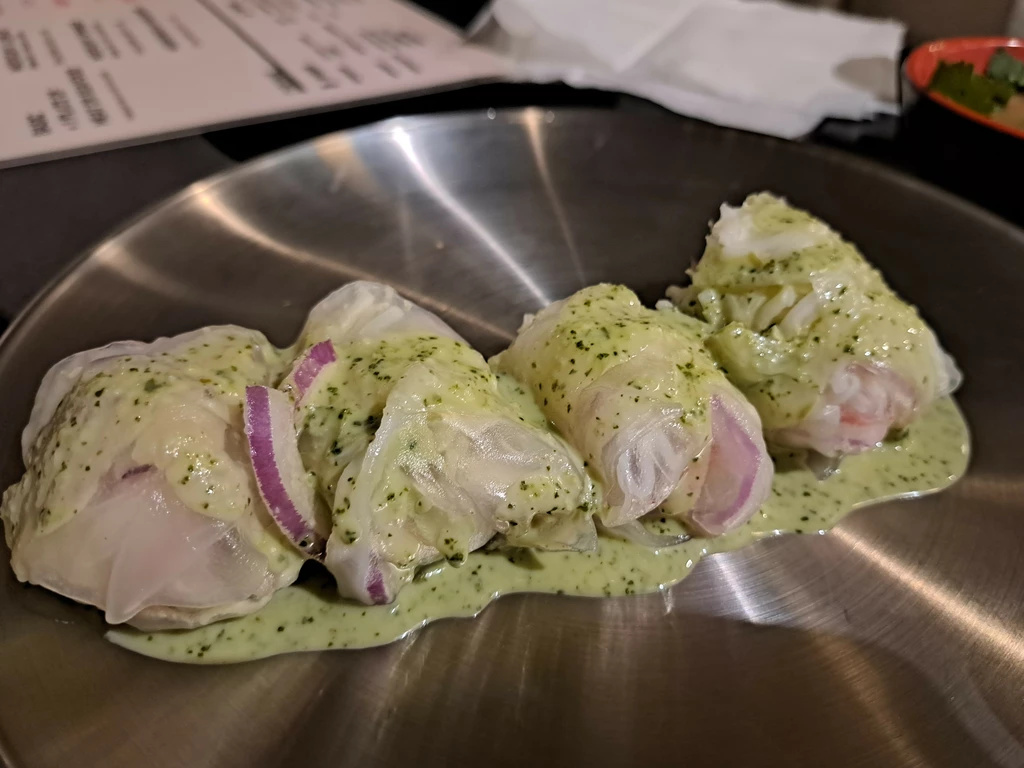 이건 뭐다냐? 기존의 월남쌈에 새로 만든 초록색 쏘스(엑시코 식당에서 타코 먹을 때 먹는 그 쏘스 베이스로 짐작됨)를 뿌려주니 맛이 업그레이드된 느낌. 동행한 직장동료 녀석 4개나 가지고 왔읍니다. 먹을게 천지인데 이걸로만 배를 채우려나?