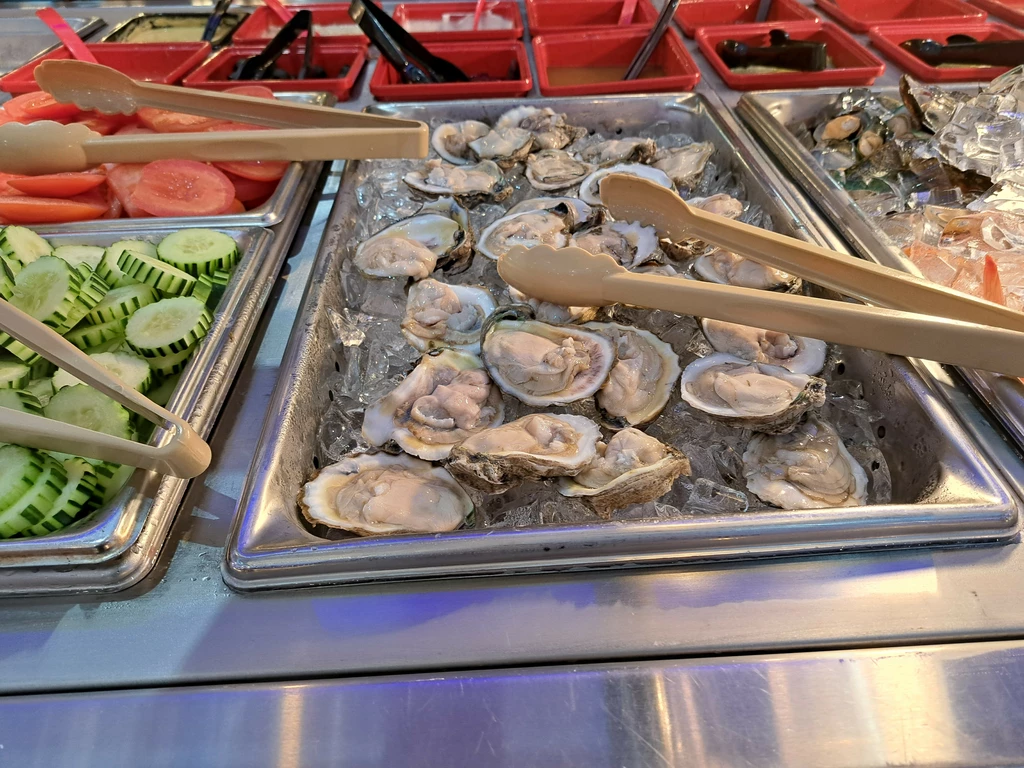굴도 있긴한데 계절이 계절인지라 날것은 피하기....발바닥이 아플때 까지 테이블과 음식 사이를 왔다갔다 하며 점점 위장의 자리를 채워 나가던중 거의 80%는 채웠다고 느꼈고 이젠 디저트 코너를 공략해야 할 차례.