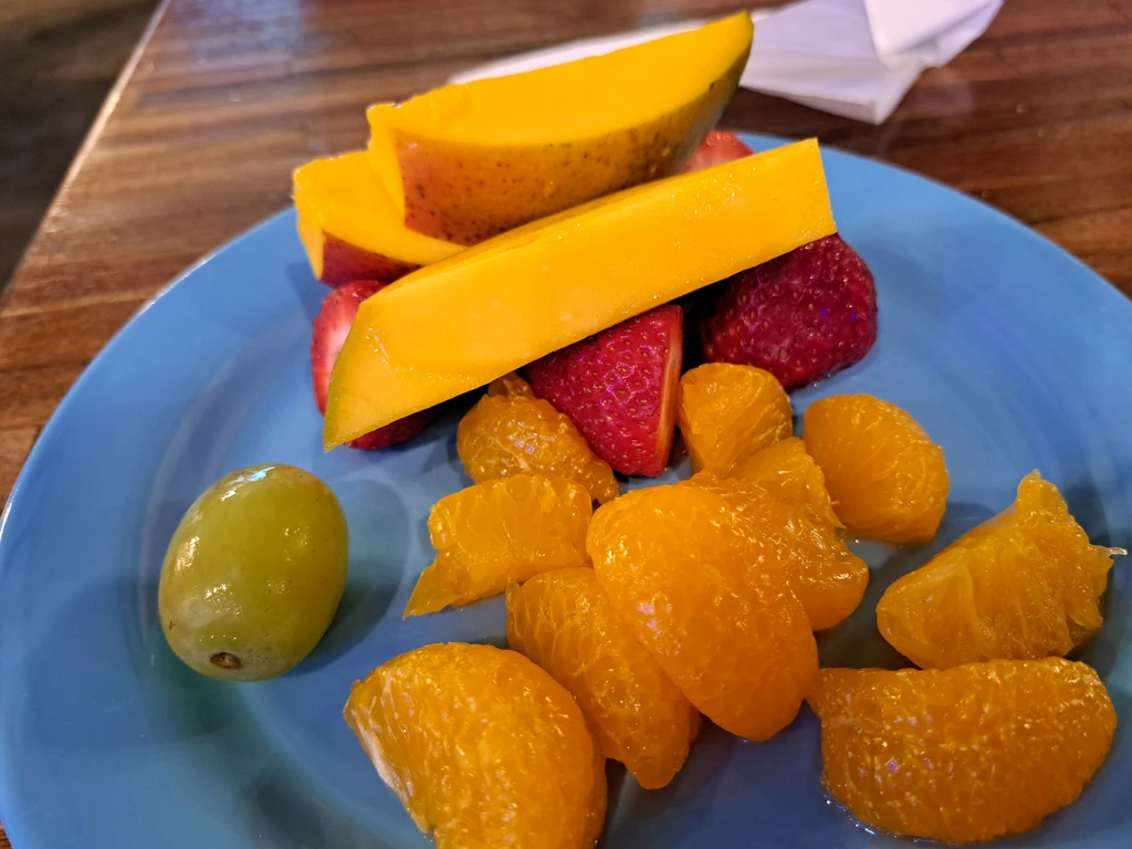 깡통귤, 포도, 딸기와 망고등으로 차려온 오늘의 마지막 접시. 디져트뿐만 아니라 과일 코너도 먹을게 느무 많아서 흐믓. ㅎㅎ. 이게 끝이라고 생각했는데... 나가는 길에 하나 손에 잡은것은...