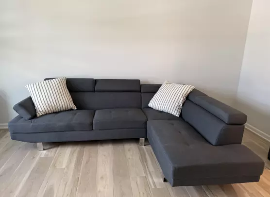 금액은 $249 입니다. 색상은 GREY입니다. 사진에 있는 쿠션도 같이 드려요. 소파 목부분 기울기 조절 가능