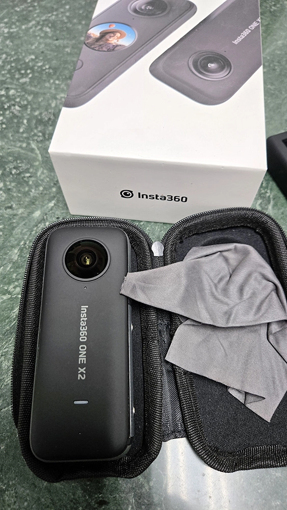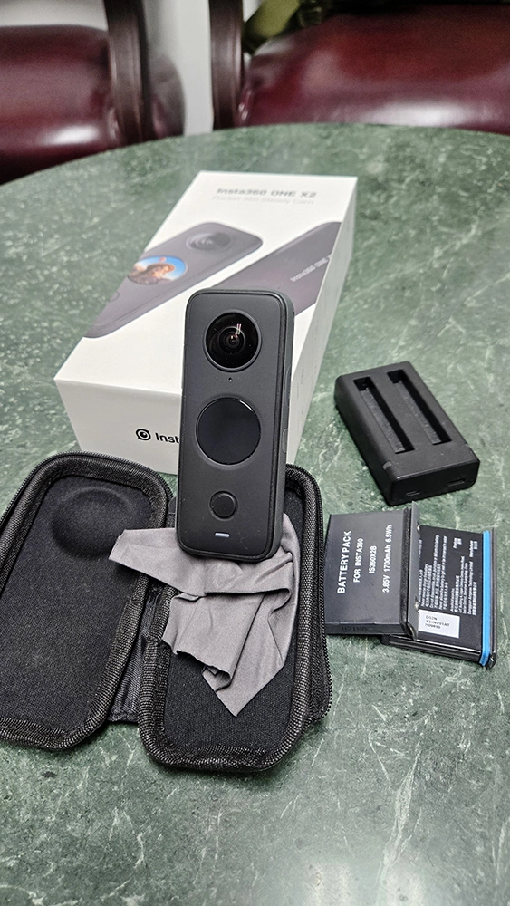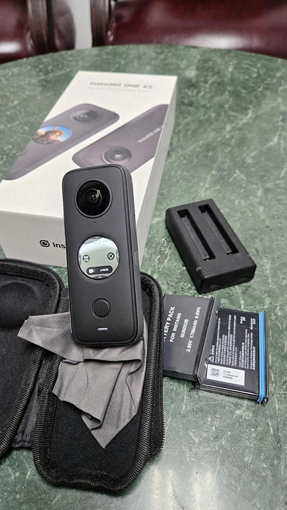 인스타 360 X2 카메라 팝니다. 사진에서 보는 것과 같이 렌즈나 제품 자체에 기스조차 거의 없는 새것에 가깝습니다.
