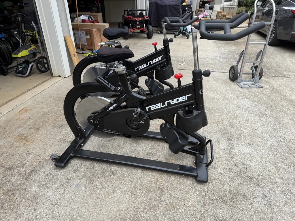 RealRyder ABF8 is a pro indoor cycle with a moving frame that lets you lean, steer, and balance - giving you a more realistic ride than a regular stationary bike. He fty steel build, 30kg flywheel, supports up to ~136 kg user weight. Full adjustability of seat and handlebars + features like SPD pedals, dual water bottle holders. G reat for high-intensity cardio, core strength, balance, and full-body workouts.
