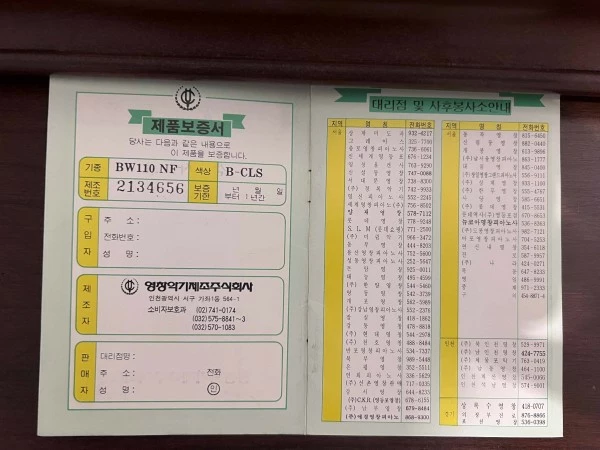 1995년 산이라서 야마하에서 부품 수입해서 한국 인천 영창공장에서 조립한 제품 라인 입니다.