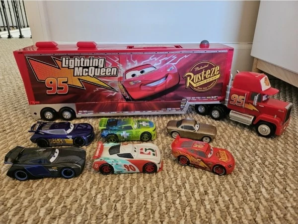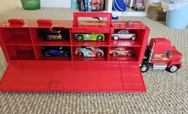 디즈니 스토어에서 100불 넘게 주고 샀고 안에 미니카들까지 상태 좋습니다.