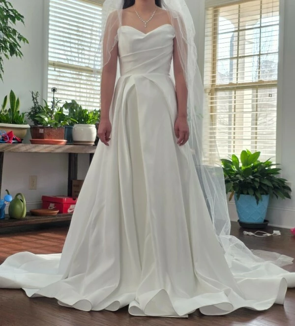 예쁜 웨딩드레스를 찾아서 사이즈 4 구매했는데 제 몸에 더 딱 맞는 드레스를 찾아서 팔려고 합니다.