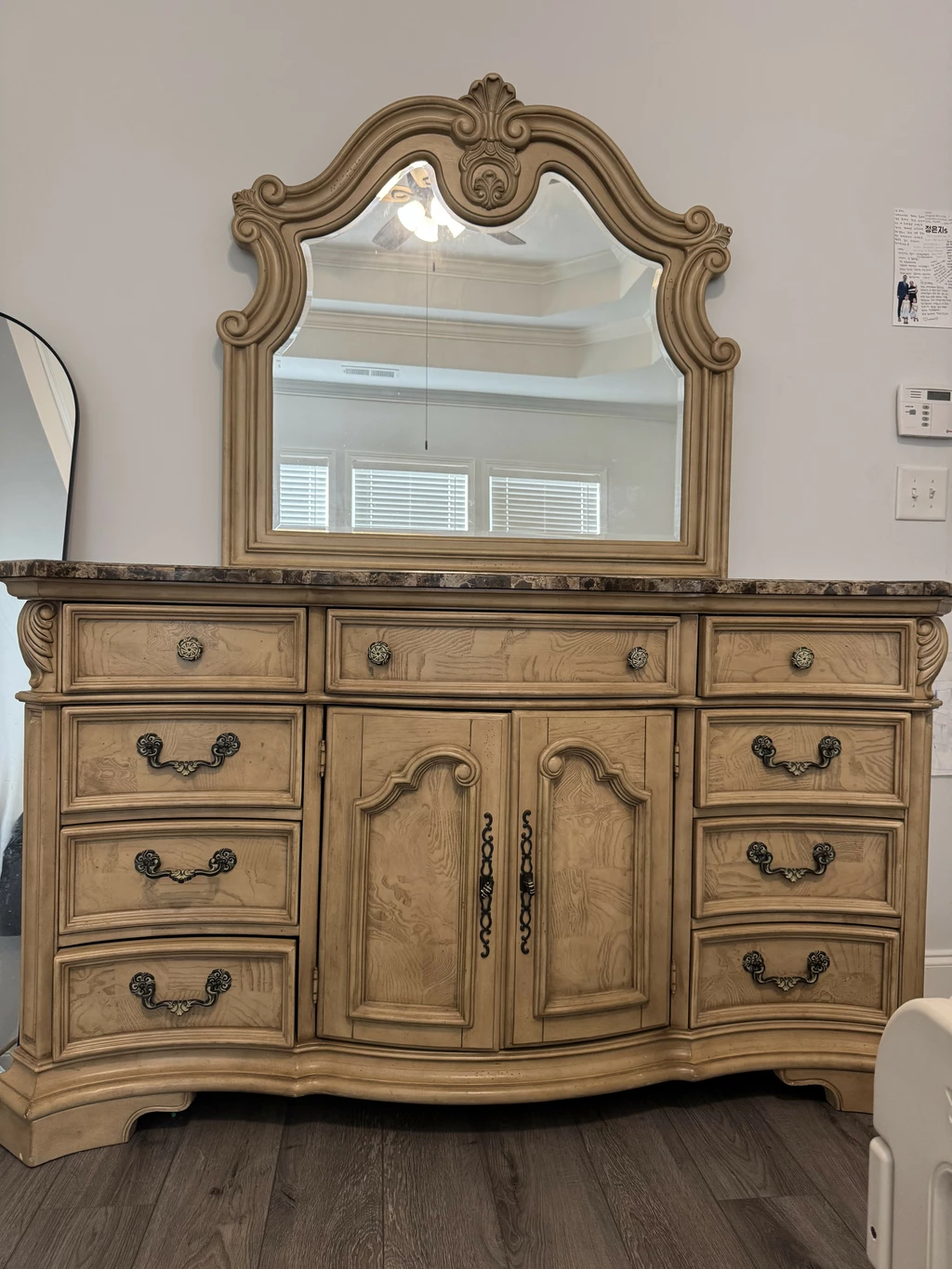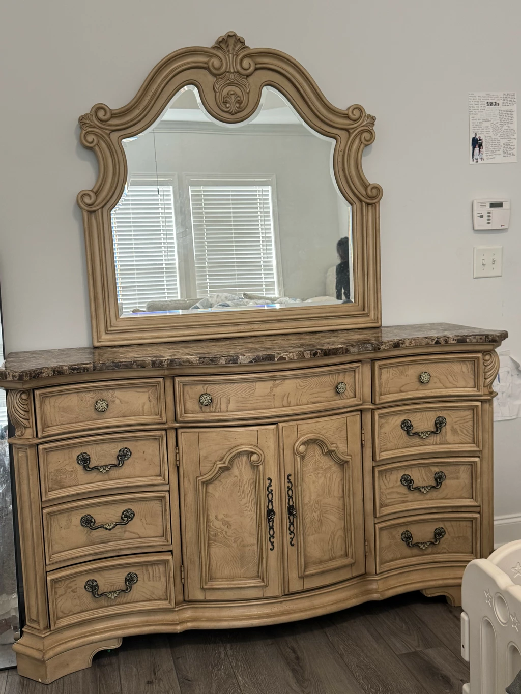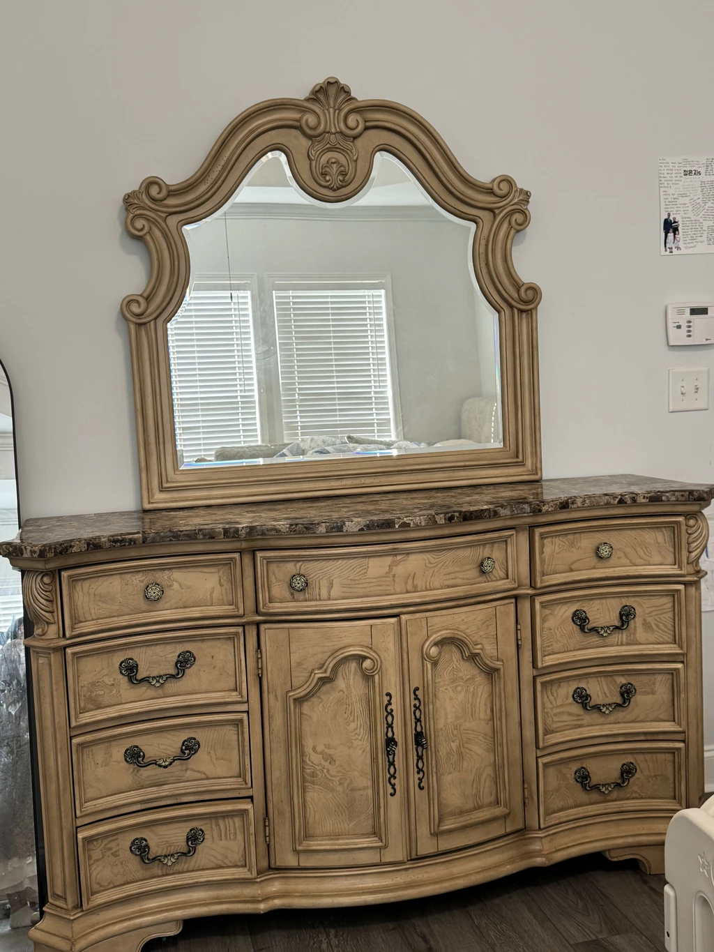 룸스투고 퀸 사이즈 베드 프레임이랑 거울 서랍장 팝니다!