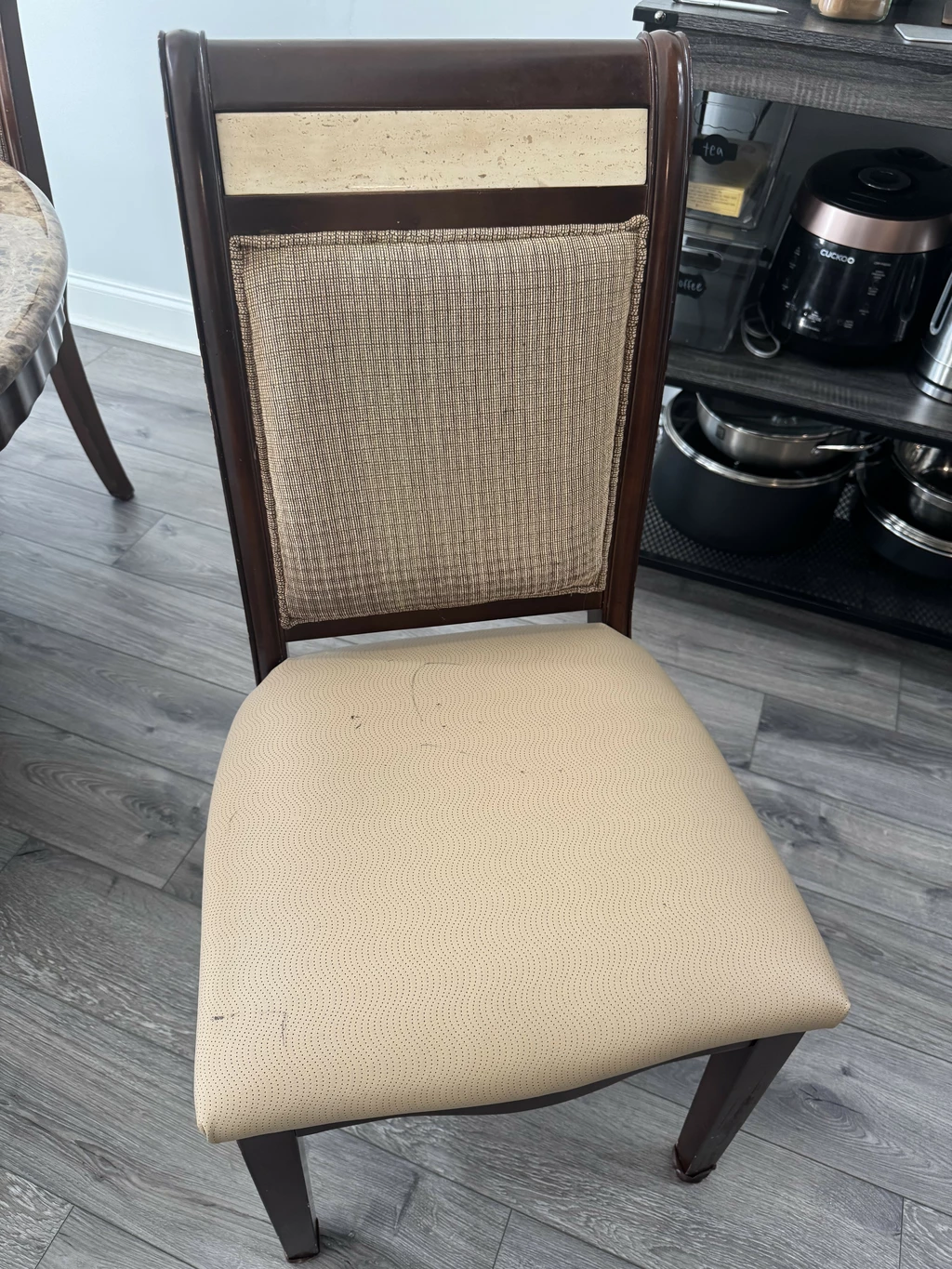 의자 2개는 낙서 자국이 있습니다.