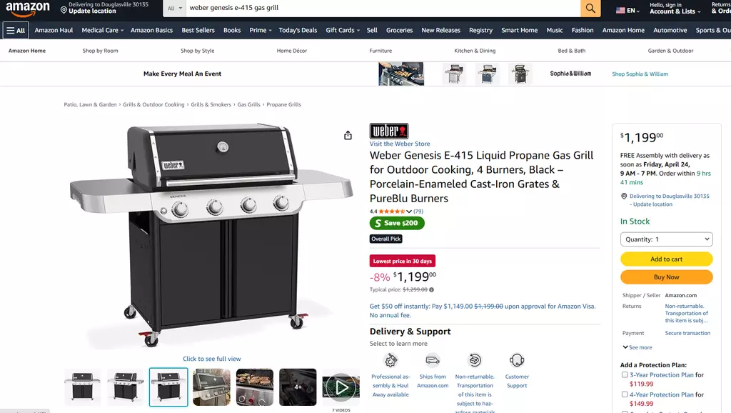 웨버(Weber) 프리미엄 모델인 제네시스 E-415 가스 그릴 미개봉 새제품 판매합니다.
